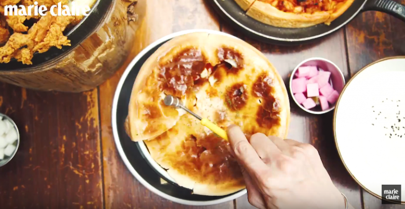 編輯最喜歡的是這道「敲的年糕 」,底下是韓國很傳統的炒年糕,上面的餅皮刷上蜂蜜,還附上小槌子讓客人敲碎再吃,和年糕混在一起吃別有風味〜因為Alvin發現,台灣人特別喜歡有互動性的食物,才把餅皮和年糕結合在一起,真的是非常用心。