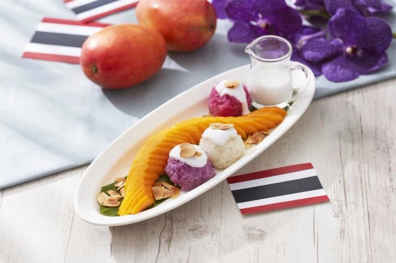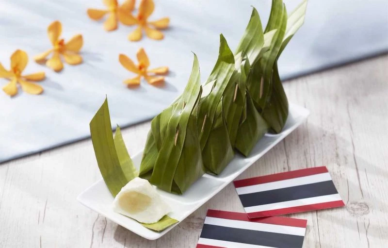 另外還有「香芒晶鑽」芒果甜糯米和「芭蕉舞椰絲」,其中芒果甜糯米是泰國經典的小吃,以天然的火龍果與蝶豆藍花製成三色甜糯米,不只好吃,拍起來也相當吸睛,而芭蕉舞椰絲則需耗時半小時以上塑形捏製,再以芭蕉葉為其穿上碧綠衣裳蒸煮,喜歡椰香的人肯定不能錯過。