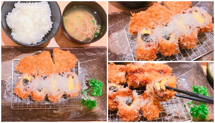 最不能錯過的就是這個季節限定的「松露雪花起司豬排套餐」,濃郁起司搭配蘑菇松露醬,還沒吃到嘴裡就能聞到香氣,鮮嫩的豬排被起司包覆,外皮炸的酥酥脆脆,最外層還會灑上限刨的帕達諾乳諾超美味,吃到嘴裡依舊能感受到豬排的多汁口感,絕對會讓人一塊接一塊。