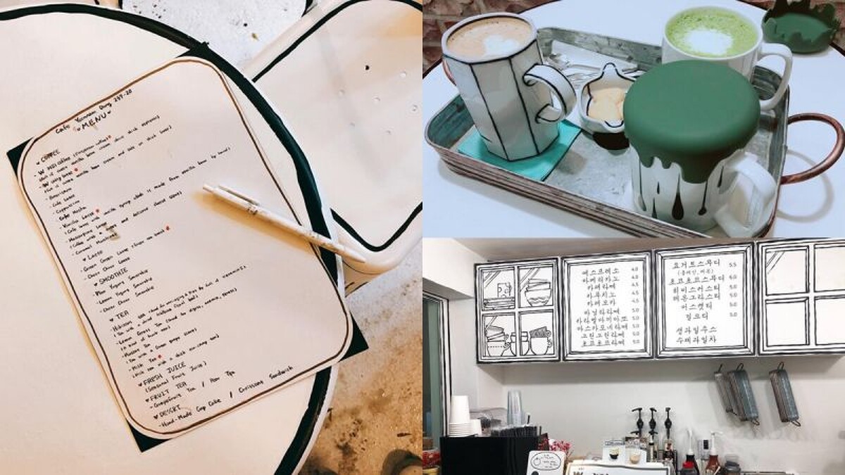 印入眼簾的無論是桌椅、地板,甚至連店內廁所全都宛如畫出來一般,以黑白色調為基準,重點是真的可以坐,雖然空間偏小,室內只有兩張4人桌,加上小型室外區,但是溫馨度100分,老闆娘相當親切,可以看到Menu也是老闆娘自己用手寫的,而在點完咖啡後更是令人驚喜,連內用杯也都像畫出來,還會附上小餅乾讓大家配著咖啡吃。