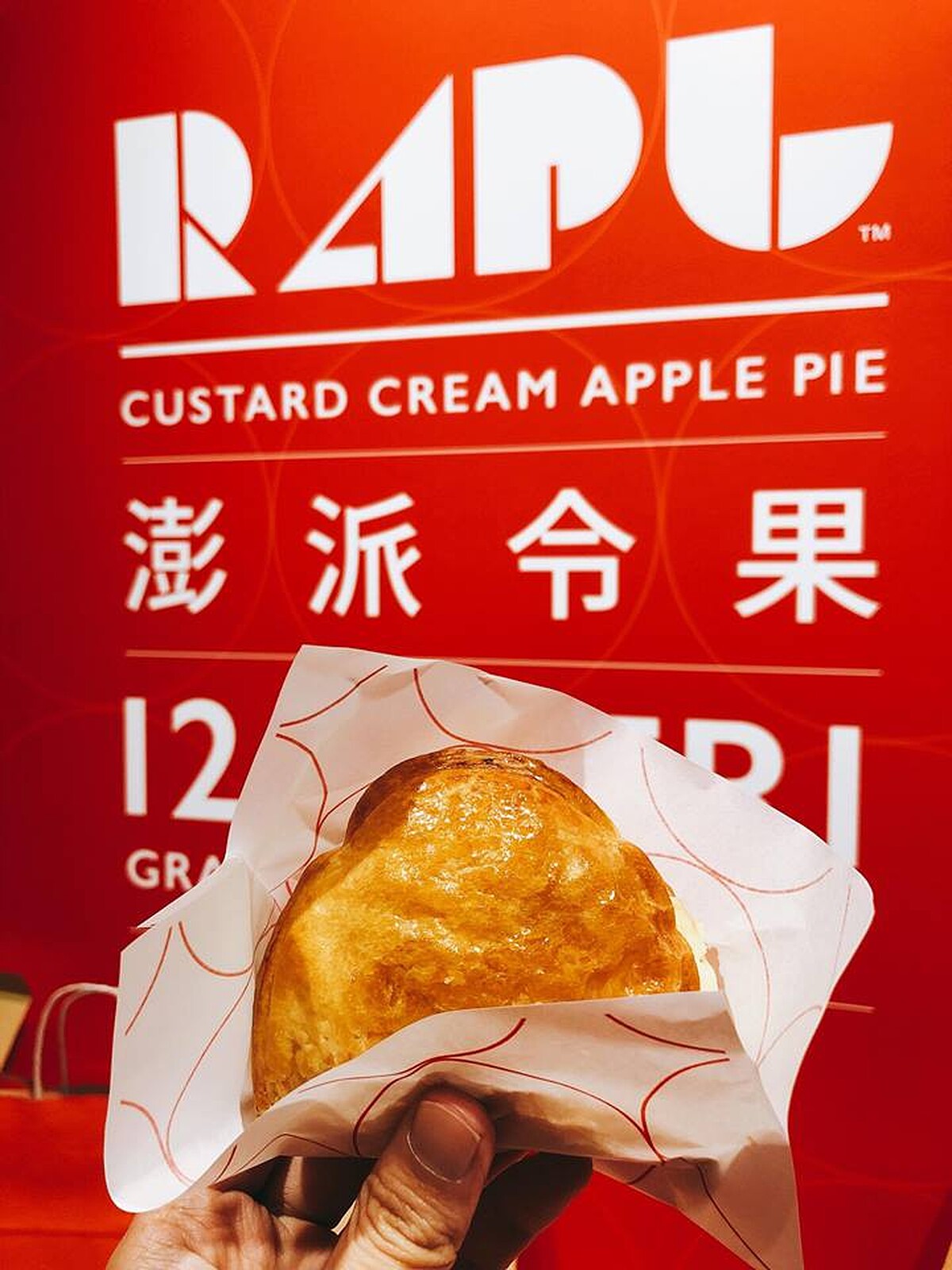 同樣是BAKE Inc.的人氣品牌,RAPL澎派令果的三大特色為「144層酥脆派皮」、「嚴選青森不摘葉蘋果及日本產蘋果切塊*」及「店頭現打現灌的鮮乳卡士達醬內餡」,跳脫一般蘋果派微酸口感,以酥脆派皮內包裹著蘋果切塊與卡士達醬,新奇口感及創新造型甫開幕即吸引大批人潮。