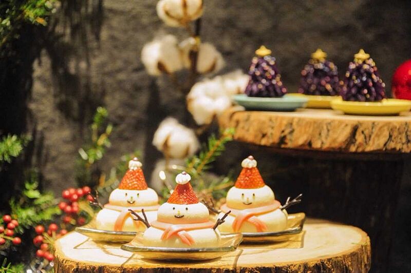 晚餐時段飯店的衛斯理自助餐廳特別祭出造型仿迷你聖誕樹的花椰菜沙拉,及聖誕節大餐必吃的現切烤火雞等料理,還有「雪人慕斯蛋糕」、「馴鹿樹幹蛋糕」、「粉彩獨角獸蛋糕」與「紫心薯草莓聖誕樹」等造型甜點,絕對是聖誕拍照聖品。