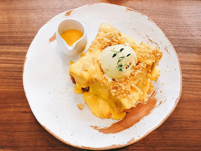 另外還有蜜糖吐司系列,其中像是「蛋黃火山熔岩蜜糖吐司」一上桌就超澎湃,還搭配冰淇淋一起吃,喜歡鹹甜鹹甜口味的人一定要嚐嚐。
