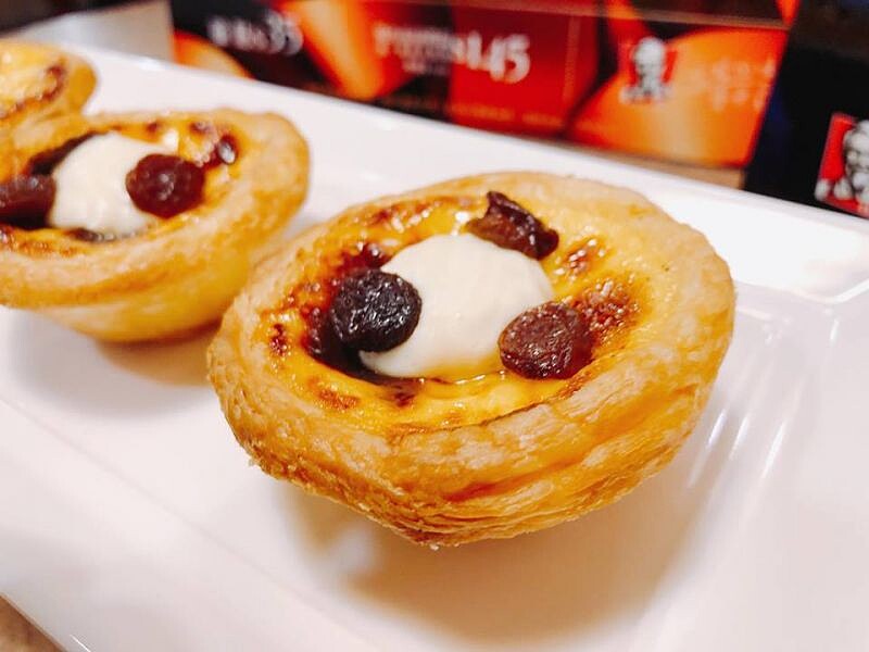 這款「蘭姆醺萄蛋撻」嚴選牛奶與蘭姆酒特調成香濃內餡與經典奶蛋液融合,經現烤出爐後,再於蛋撻上層擠滿蘭姆牛奶爆漿卡士達醬,並撒上蘭姆酒漬葡萄乾提味,每顆蛋撻皆以獨家手工製程捏製,163層酥脆撻皮讓每一口都充滿層次感。