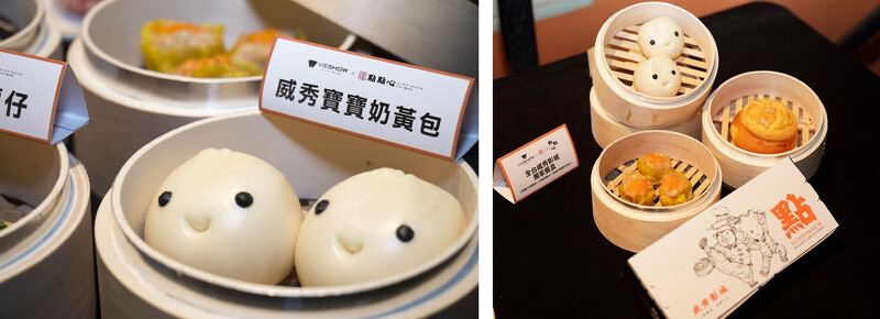 看電影只能吃爆米花嗎?不,威秀影城與劉峻緯(阿緯)代理的人氣港點「點點心」聯手,要讓影迷看電影多了新「港」覺,給影迷看電影時也能享受到人氣港點。全台販賣部推出人氣三兄弟:蟹子燒賣皇、叉燒菠蘿包與獨家的威秀寶寶造型奶黃包,給你甜鹹好滋味。除了「基本款」之外,威秀影城GOLD CLASS頂級影廳更能吃到很多精緻餐點,如:港點必吃的瑞士雞翼撈丁、山竹牛肉球、滑蛋牛肉飯、花菇芝麻包、港式凍檸茶等。