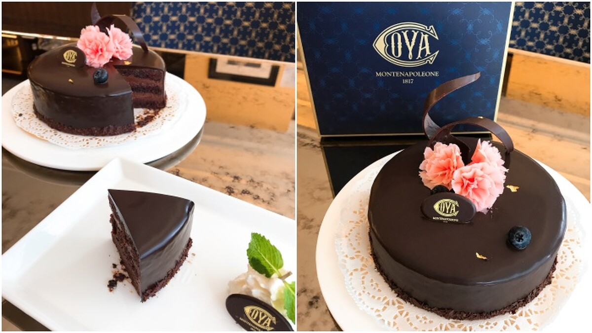承襲百年的經典沙赫,是COVA巧克力蛋糕中的經典之作。以占杜亞榛果巧克力醬和法國頂級可可粉融合製成巧克力慕斯內餡,夾層於口感紮實的巧克力海綿蛋糕,杏桃醬薄層帶出清新餘韻,表層淋上巧克力鏡面閃耀低調光澤,綴以手工製作的巧克力康乃馨花朵及奢華金箔,別具層次深度的馥郁巧克力風味。
