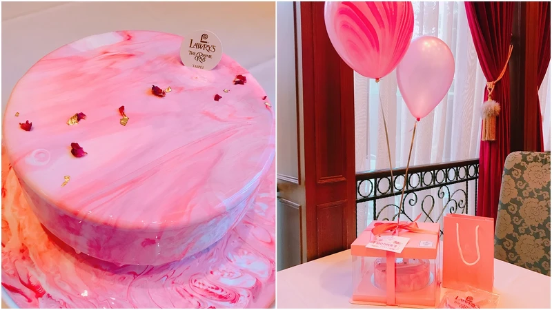 宛如藝術品的大理石鏡面蛋糕,一層花香與奶香融合的玫瑰慕斯,一層清新淡雅佛手柑凍,一層酸甜玫瑰果醬,一層鬆綿達克瓦茲,品嚐起來有玫瑰花淡雅的香氣,與酸甜果醬激盪出初戀般氛圍,禮盒還搭配夢幻的粉紅大理石紋氣球。即日起到5月10日開放預購,4月底前預購還能享有699早鳥優惠價喔。蛋糕採取預購的方式,這次的包裝設計也跟蛋糕相呼應,會有大理石紋路的氣球,附贈的餐具組也非常可愛唷。