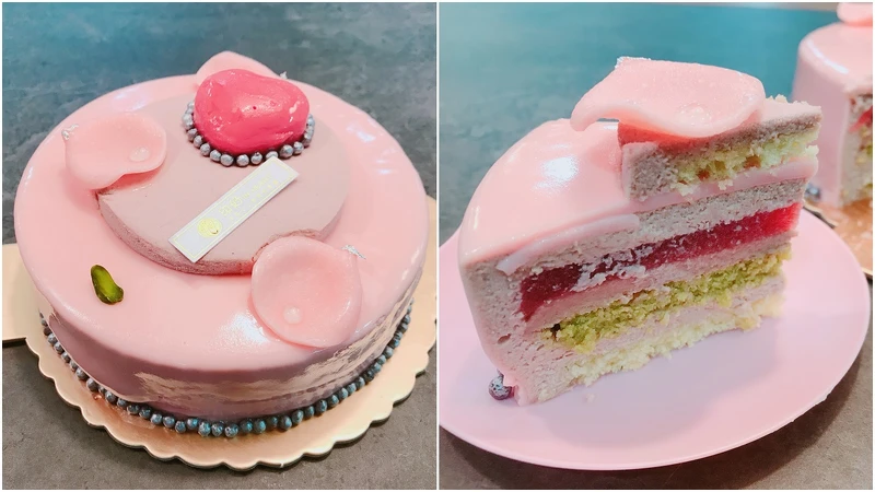法國最強的可頌品牌GC也推出一款母親節蛋糕「巴黎薔薇」,以草莓戚風蛋糕為主體,點綴上些許荔枝果凍,外層則是覆盆子玫瑰奶酪包覆,更擺放著新鮮草莓及藍莓裝飾。鬆軟的蛋糕帶有淡淡玫瑰香氣,吃起來非常清爽不會過於甜膩。6吋價格為880元。