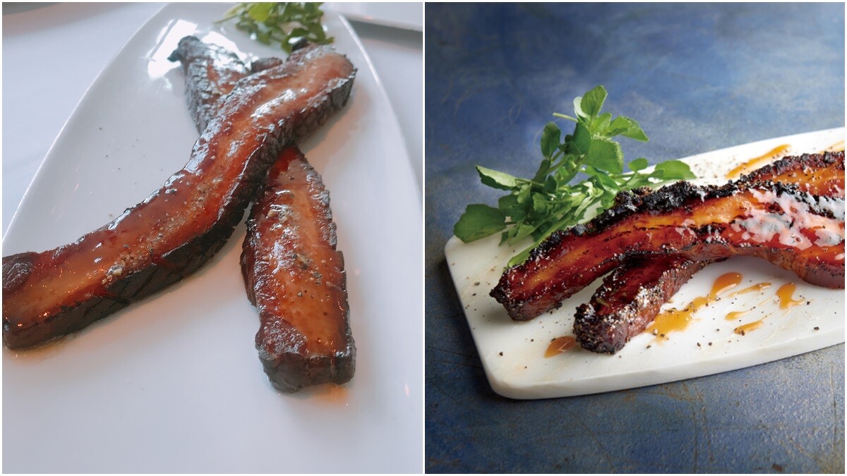 這道選用有培根界勞斯萊斯Nueske’s肉品製作成的厚切培根佐蜜桃威士忌醬,將厚切12oz.培根烤至金黃,再刷上蜜桃威士忌醬,吃起來鹹香鹹香隱約帶有煙燻味,非常適合來上一杯美酒。