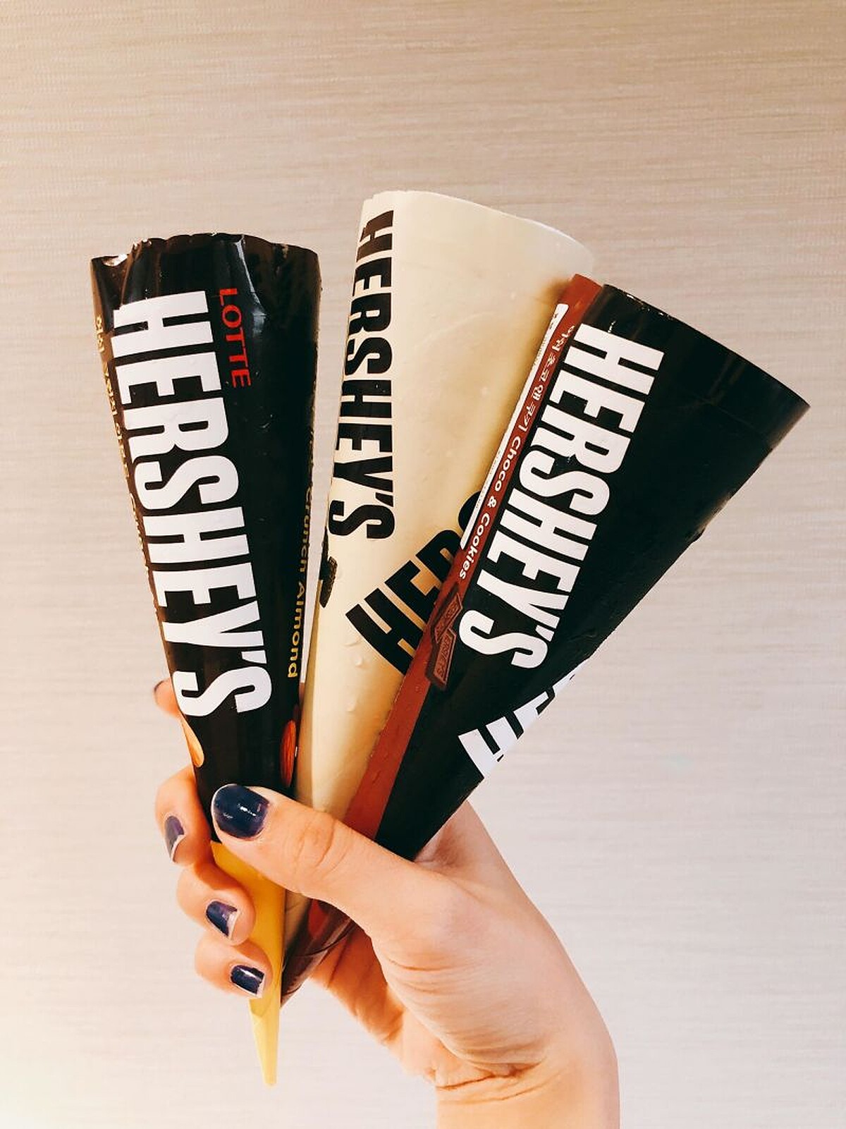 而絕對不能錯過的還有訪韓必嘗的Hershey’s 巧克力雪糕與甜筒,外層巧克力酥脆的口感,搭配濃郁滑順巧克力冰淇淋內餡,讓人一口一口超上癮,就連冰淇淋甜筒也是風靡韓國年輕族群的必備冰品。