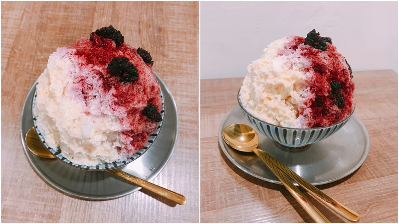 當初在設計菜單的時候,老闆把製作甜點的概念放進冰品,每一道冰品都是以套餐的方式呈現,更堅持要有2-3種的層次。像是宇治焙茶馬斯卡朋生乳,上頭就是提拉米蘇會有的馬斯卡朋,搭配焙茶超合拍也不會太膩,店家貼心附上一盤蕨餅,讓剉冰品嚐起來味道更豐富。