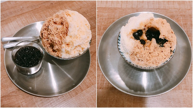 最近還新推出特製可可牛奶什錦冰,上頭的無糖可可粉搭配剉冰一起吃,吃得到濃郁可可香氣,搭配地瓜圓、芋圓也別有一番風味,務必記得加一球老闆推薦的古早味冰淇淋。