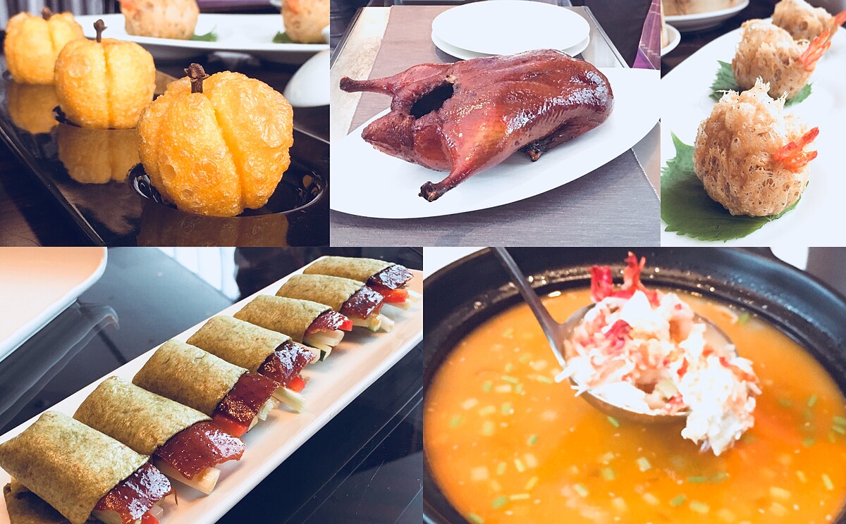 台北W紫艷中餐廳不只美味,因為位處信義區31樓層可登高飽覽信義區絕佳市景,最人氣的招牌餐點:紫艷片皮鴨及紫艷西施泡飯,六月全新升級上桌食材驚人,再加上全新蒸點─紅裳鮮蝦西施餃、炸點─芋茸蜂巢鳳尾蝦、千絲萬縷芋絲炸春卷,到甜品─南瓜金鑲脆果和奶皇千層馬來糕,來自香港主廚細膩烹調層次和精巧外觀,都是展現彷彿就在香港般的道地港式美味。片皮鴨只用油脂豐富的宜蘭溫體櫻桃鴨香料滷水再淋上麥芽糖醋風乾,附上炸芋絲、松露起司、冰梅醬、淮鹽、白糖、黑胡椒超多新配料與原味餅皮和菠菜餅皮,吃得到多層次口感。