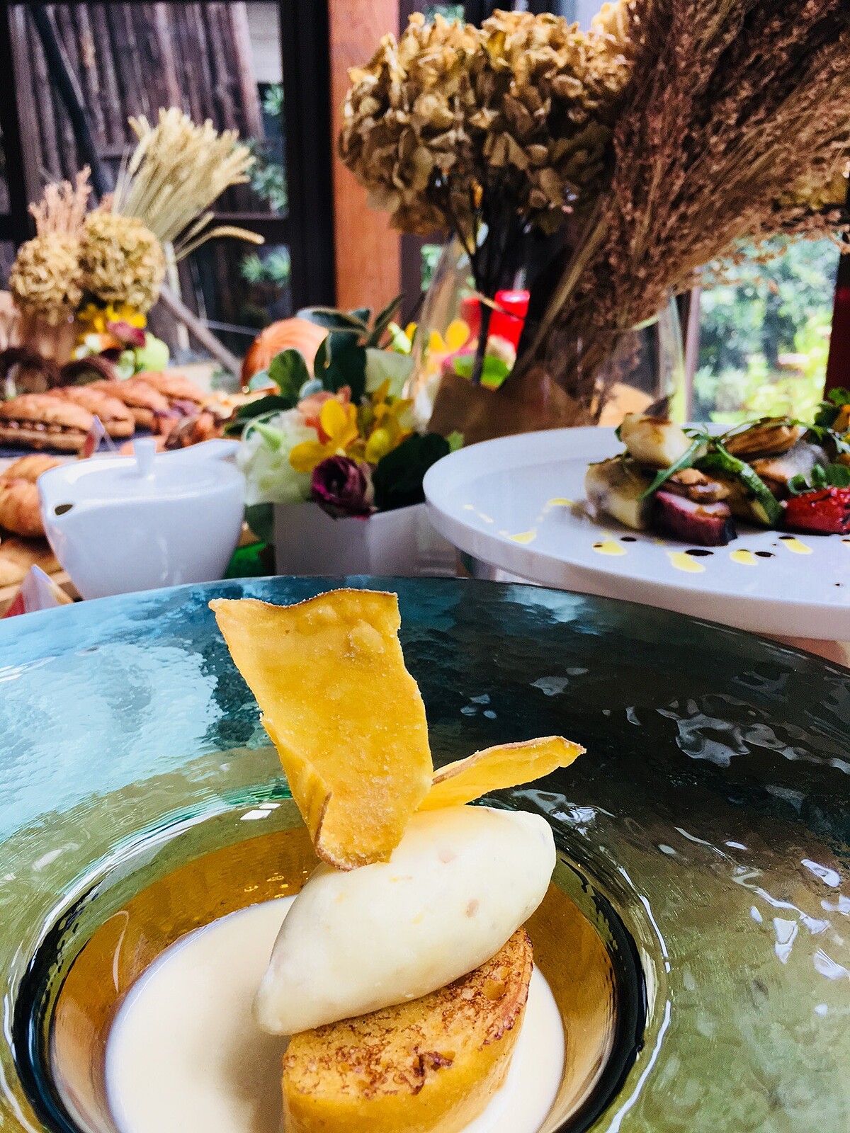 特別的低溫發酵製程,發酵時間拉長到一般麵包的4到5倍。為什麼要這樣做呢,主廚說,這樣延緩發酵的速度,可以偷時間讓麵粉的甜味和麥香能夠在麵糰裡慢慢醞釀。香氣韻味濃厚了,竟就登上法式料理主餐之列,成為配菜等佐餐良伴。