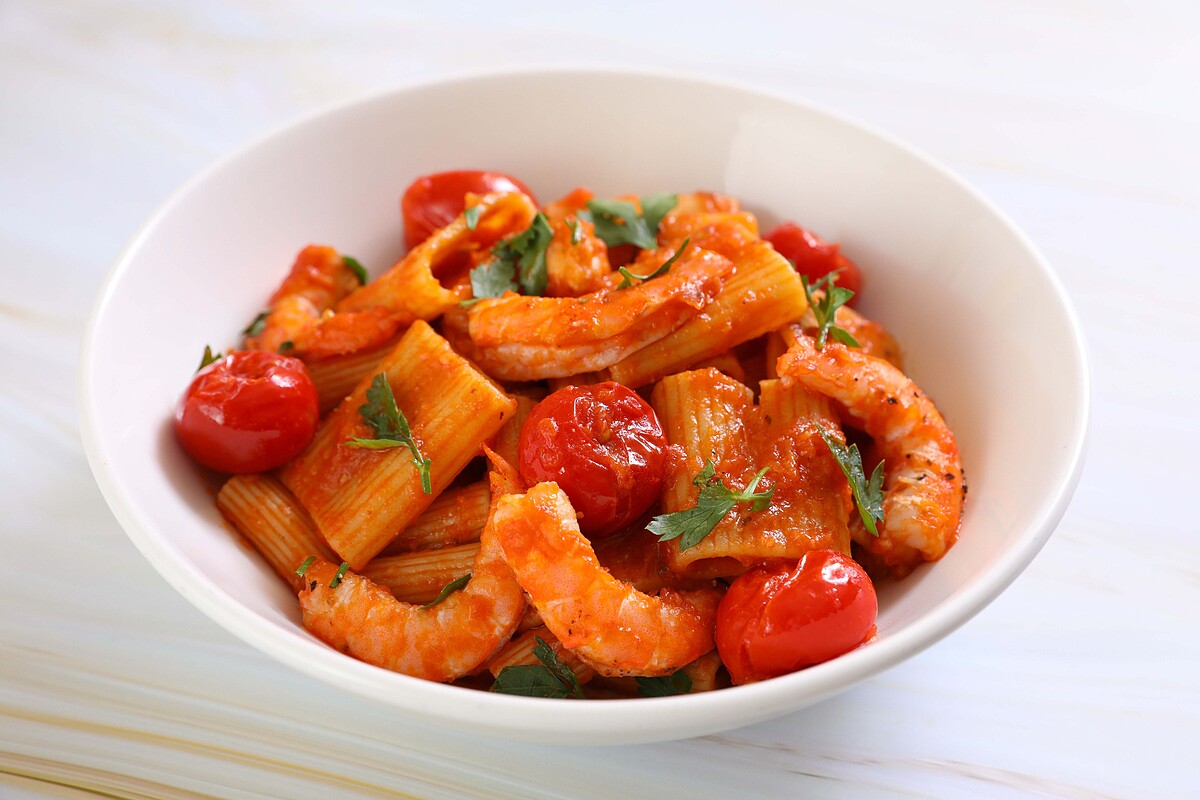 西西里風味鮮蝦水管麵同樣採用正統製作的義式料理,鮮蝦搭配水管麵再合拍不過。
