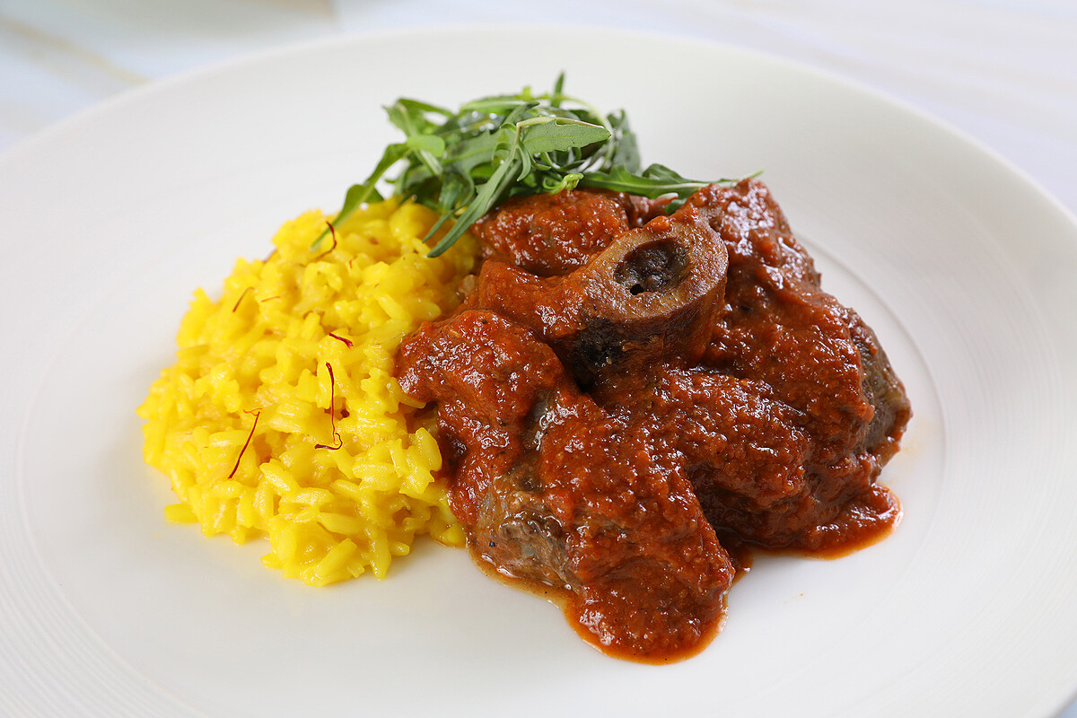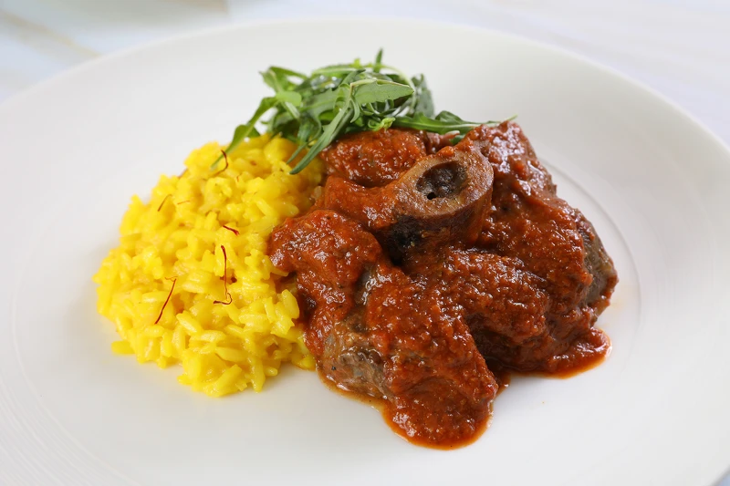 最經典的自然少不了米蘭馳名的紅花燉飯佐燉牛膝,上選牛膝富含膠質慢火熬煮口感軟嫩適宜,燴上醬汁入味再搭配義大利進口米製作的番紅花燉飯香氣獨到。