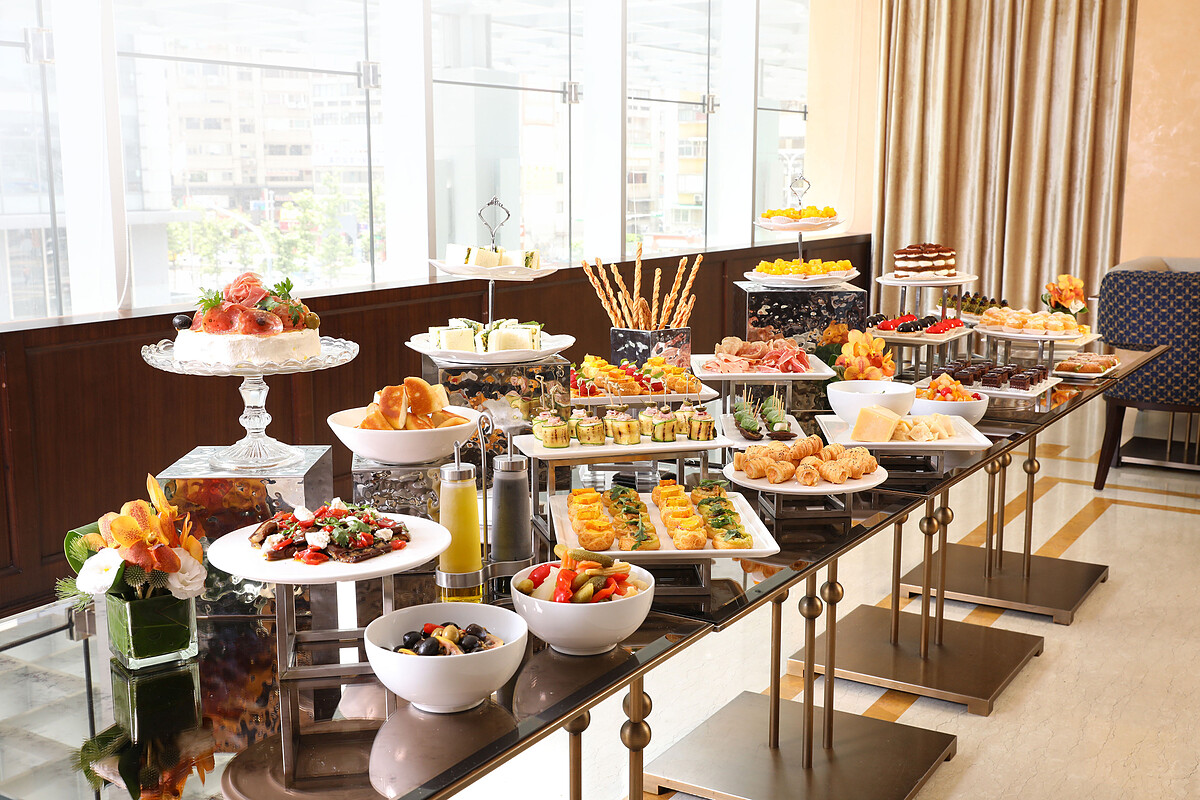 週末限定早午餐除了可以從精選的5道主菜中挑選1道自己想品嚐的,還有無限享用的豐富甜鹹小點盛宴,其中包含蒙特岱拉火腿起司蛋糕、綜合冷肉盤配糖漬水果、青醬雞肉起司酥餅、龍蝦沙拉鹹卡倫契諾等多款鹹點。