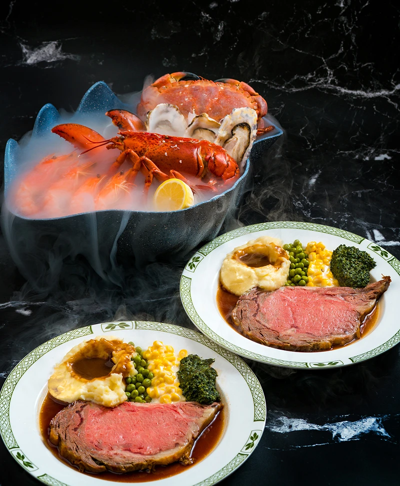 除此之外,海陸雙拼當然不能放過Lawry’s最著名的頂級Prime烘烤牛肋排呀,採用產量只佔全美國牛肉市場2%的頂級牛肋排(Prime Rib),以主廚低溫慢火烘烤達兩小時,燒出來的鮮嫩肉質口感,絕對是來Lawry’s必吃的經典牛肋排。套餐裡也包含了前菜冰炫翡翠沙拉、湯品與甜點,一次享受兩種海陸的高級美食,犒賞一下炙熱的夏天吧。