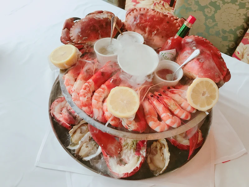 主打Lawry’s豪華英式皇家海鮮盤,以有蟹膏之王稱號的愛爾蘭霸王蟹為首,飽滿的肉質搭配高於一般螃蟹6-10倍的蟹膏,每一口吃下去都幸福滿滿;接著是整隻波士頓活龍蝦,拉出巨大蝦螯,鮮美彈嫩的肉質立刻就想往嘴裡送;還有歐洲生蠔饕客的新寵兒南非鑽石生蠔,肥美的白肚子飽滿又帶點牛奶鮮甜,不放過每一個感受幸福的時刻;最後就是兩款綿密鬆軟的天使紅蝦與鮮甜彈牙的藍鑽蝦,兩款扎實和彈嫩的不同口感蝦肉,享受極豐富的滿滿海鮮味!