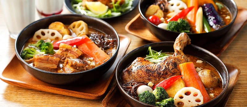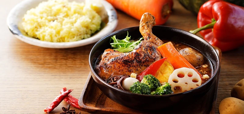 來自北海道的人氣美食湯咖哩,有別於傳統濃稠咖哩,無添加麵粉,並遵循日本食譜,湯底以雞骨、豬骨與大量蔬菜及辛香料熬製而成,每口咖哩湯汁,都能感受到香醇湯頭與蔬菜的鮮甜回甘。而店內招牌「GARAKU招牌鮮嫩雞腿」,精選每日新鮮大雞腿,使用日本社長秘製醬料細心熬煮,不需刀子,以叉子輕輕劃開即可品嚐美味。另外一道人氣商品「涮涮豬五花佐綜合菇」,黃金比例豬五花搭配滿滿綜合菇類,豪邁地一起放進湯咖哩內燉煮,清爽的口感一起對抗炎熱夏天!