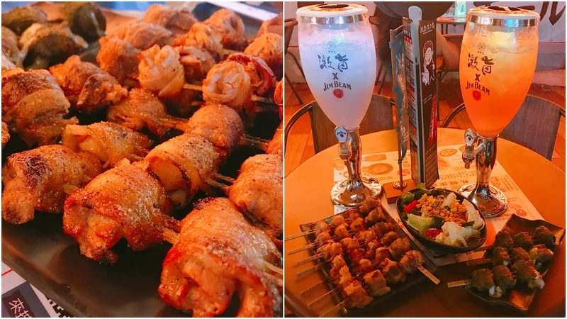 打造成日本祭典的氛圍!在逢甲知名度爆表的「激旨燒鳥二店」把肉與蔬菜結合,必吃牛肉蘋果、牛肉水梨、豚肉麻糬串燒