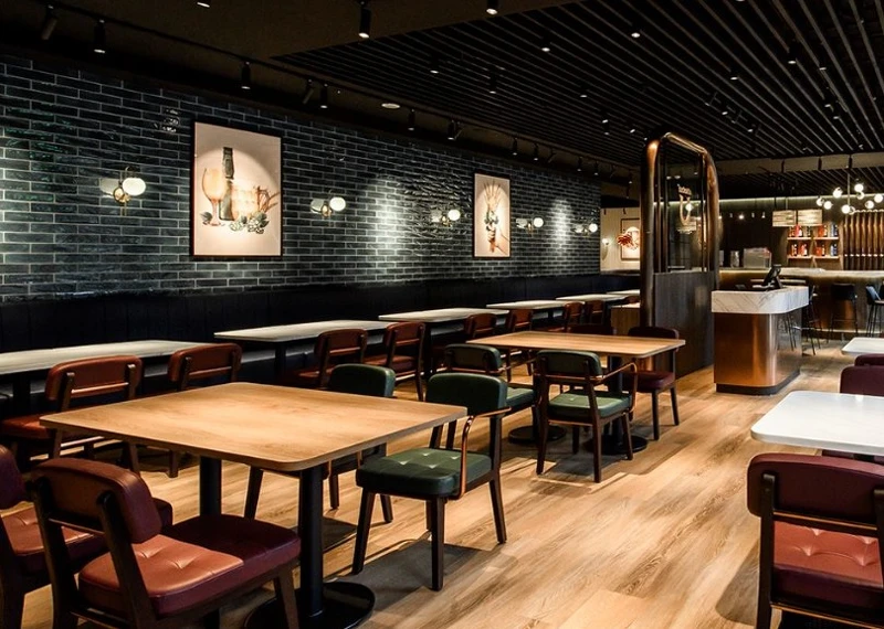 用餐區有著寬敞的空間,沙發區牆上的手工磚呈現,有種復古歐風的低調奢華感,讓啤酒餐廳的質感UP UP,時尚度100%。