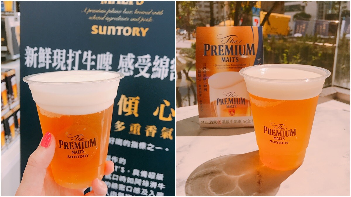 另外,7-11也攜手日本頂級生啤酒「The PREMIUM MALT’S三得利頂級生啤酒」,從7月13日起在台北統佳門市正式開賣新鮮生啤,分別有300ml、420ml的選擇。使用100%歐洲產濃香型啤酒花、100%精選麥芽和日本深層天然水,製作出具備綿密細緻泡沫的生啤。入口時如同絲滑牛奶般的泡沫帶來的綿密口感,接著感受到一股清新的麥芽香,當啤酒緩緩入喉,啤酒花特有的微苦會慢慢釋放,最後麥芽香會留在口中形成餘韻。