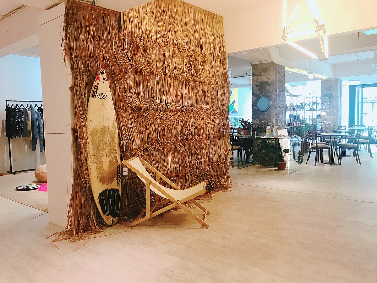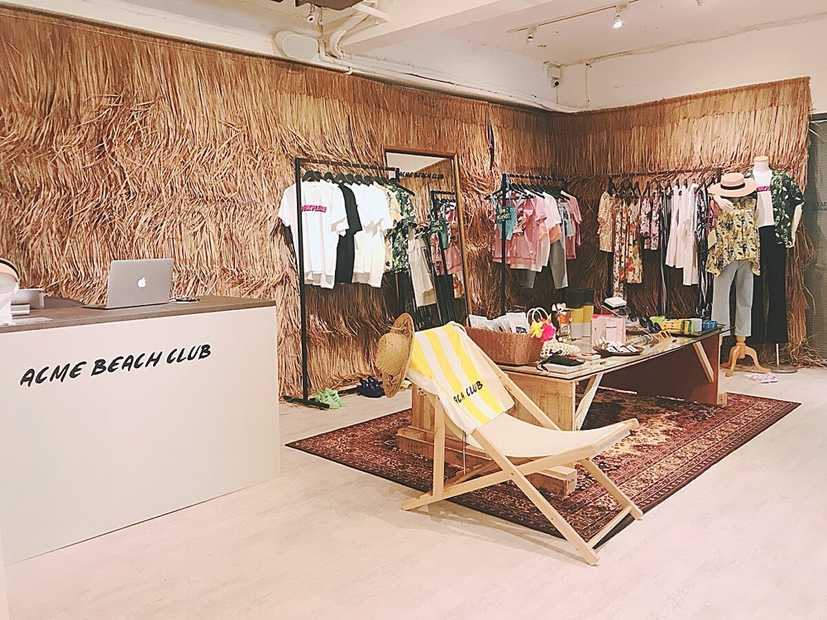 店內另一頭也呼應海灘主題,打造成海灘商店THE BEACH SHOP,集結許多設計師品牌與小眾風格的單品,包含巴黎古董市集的Vintage古巴領衫,峇里島南洋風編籐包,日本品牌TOGA的拖鞋等。