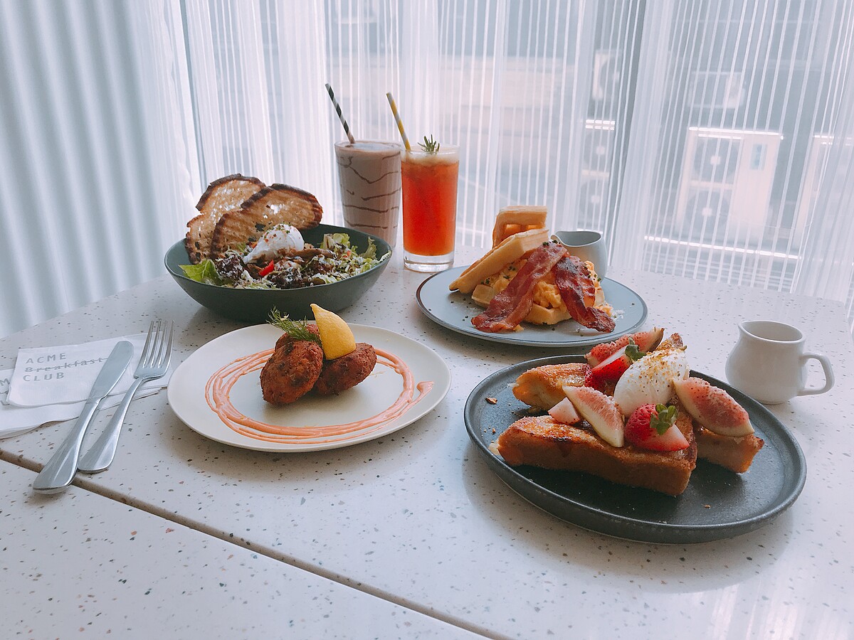 餐點以三大經典:酪梨(Avocado)、培根(Bacon)、起司(Cheese)為主軸,同時呼應ACME Breakfast CLUB的ABC縮寫。提供歐式單點的全日早午餐,並會更換一些當季的水果、蔬菜,打造兼具視覺且美味的餐點。還有這道ACME法式吐司也是店內的招牌,將法式吐司外層煎至酥脆,搭配無花果、草莓等新鮮水果一起享用。