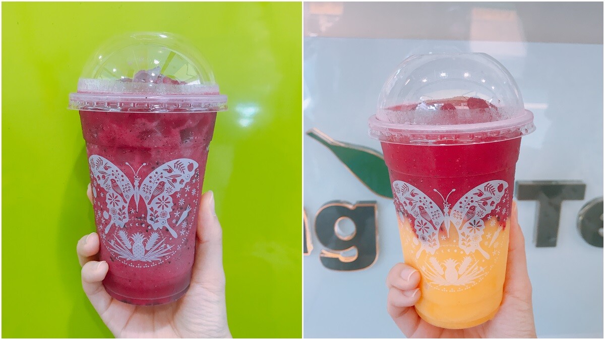 仲夏戀習曲除了火龍果冰沙外,更加入盛夏當季的芒果冰沙,兩者攪拌在一起喝起來更美味。