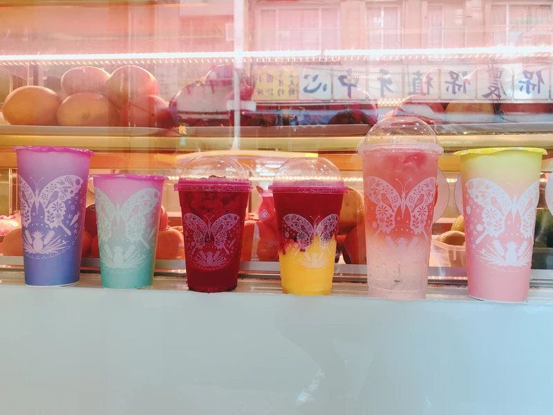 另外,大苑子更找上設計大師蕭青陽,打造5款聯名包裝。以旅途中不經意見到的風景為靈感,將蝴蝶飛舞的模樣放到飲料杯上,打造漸層、透明的設計。