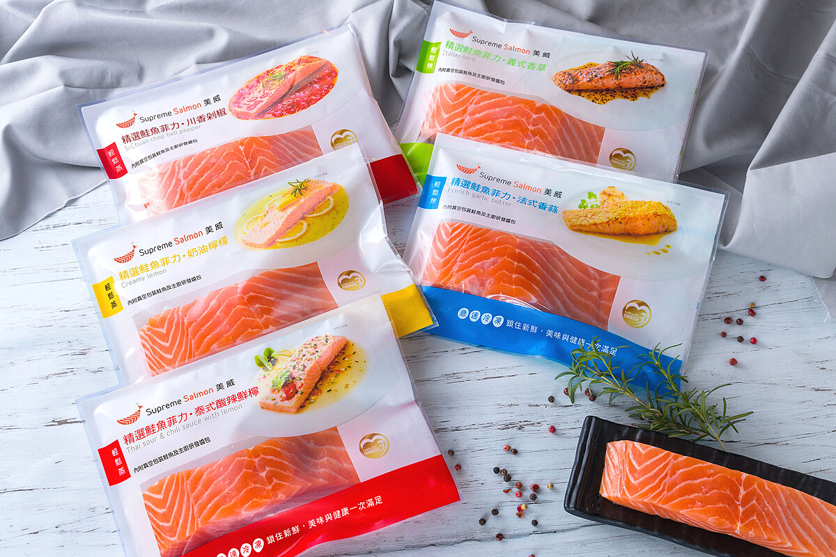 在家就能品嚐到美味又頂級的鮭魚料理!美威精選鮭魚菲力輕鬆烤 / 輕鬆蒸系列共推出5種口味,包括深受大小朋友喜愛的「奶油檸檬」、蒜香四溢的「法式香蒜」、散發清新香草芳香的「義式香草」、香辣誘人的「川香剁椒」,以及爽口開胃的「泰式酸辣鮮檸」口味。