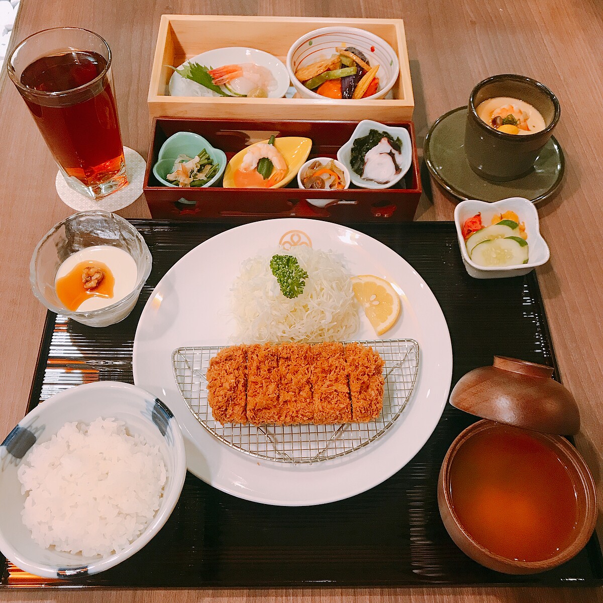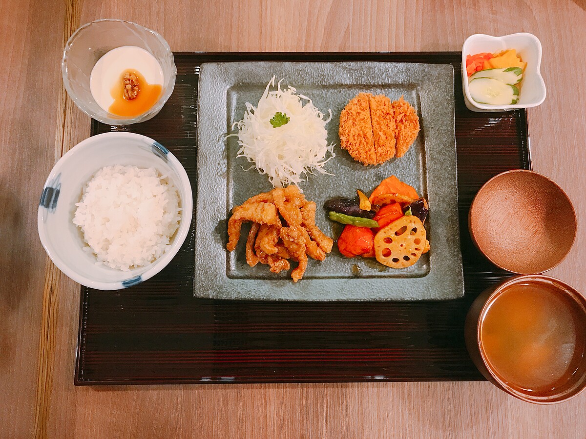 還有這道特別膳套餐,以在地特選豬種「快樂豬」豬排,肉質軟嫩又有嚼勁,搭配日式正宗配菜,品嚐起來很合拍而且飽足感十足。
