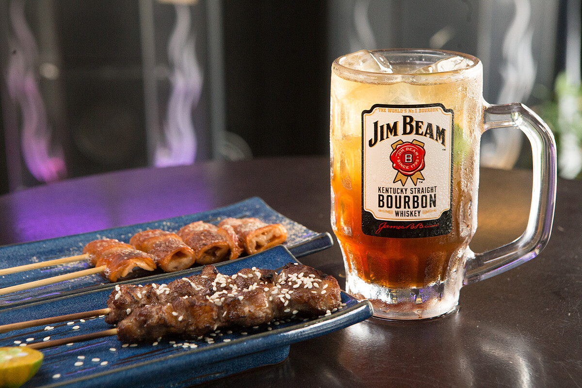 主要販賣串燒、燒烤、炸物及各種調酒類,其中牛肋條、明太子雞腿肉串、醬燒培根番茄、中式炸物拼盤等都是推薦品嚐的美食,想要小酌的人可以點一杯可樂口味的金賓HIGH,搭配這些重口味的食物非常合拍。