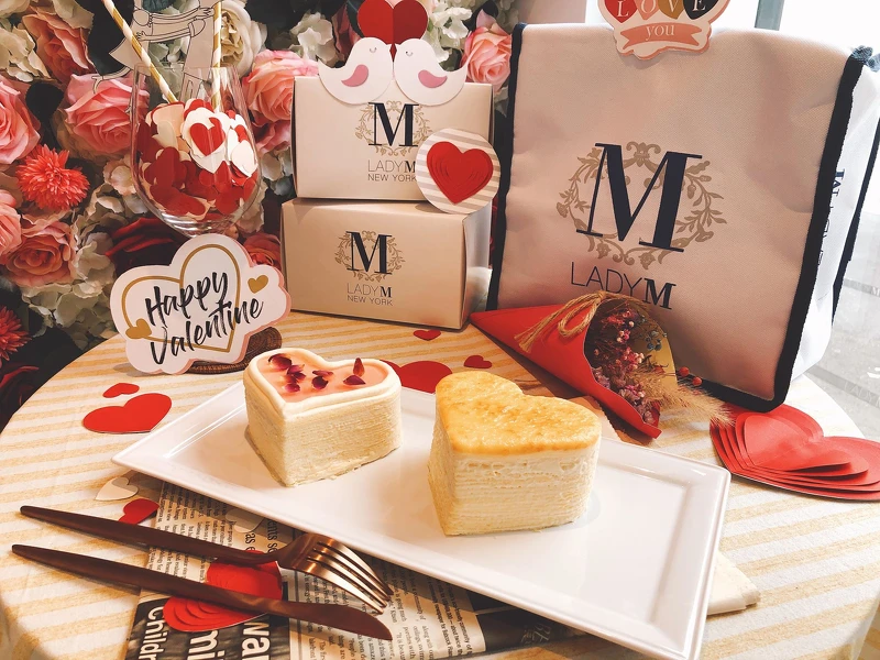 今年Lady M為了七夕情人節推出「花漾情人套餐」,包括「經典原味愛心千層蛋糕」與「玫瑰愛心千層蛋糕」,將蛋糕變成愛心形狀,不只外型小巧可愛,也超適合情侶兩個人的份量享用。