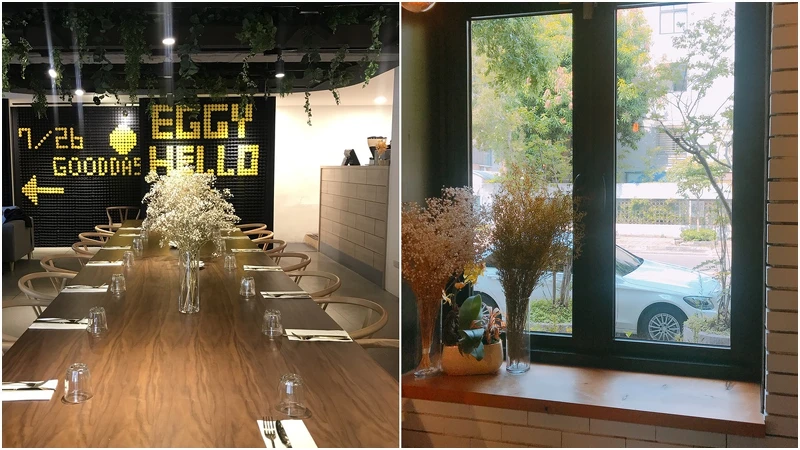 進到餐廳裡頭,就會看見一張大長桌擺在正中間,老闆說這是源自澳洲墨爾本每年都會舉辦的「墨爾本美食美酒節」,這個節日最受人矚目的活動就是「世界最長餐桌」,透過餐聚的概念縱使彼此不認識,也能因為共享餐點而建立起友誼,而EGGY也希望能傳遞這樣的概念。