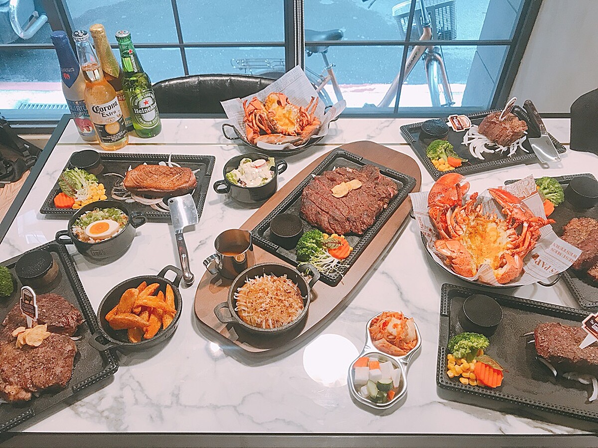 很牛炭燒牛排也有提供鹽烤大草蝦、炭烤生蠔、炭烤德式香腸等料理,可以讓三五好友一起分食。以工業風打造的用餐環境,搭配大理石紋路的餐桌,也能拍出超美的用餐照。
