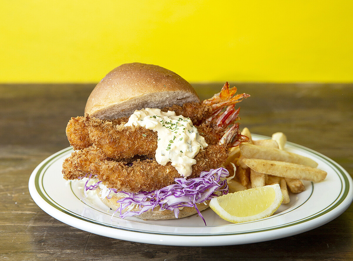 大家還記得之前造成話題的咔辣姆久唐辛子漢堡嗎,這次吸引炸蝦控不要錯過的季節限定迷人炸蝦堡,同樣來自J.S. FOODIES TOKYO。使用五隻去殼草蝦,層層包裹蛋液和麵衣,炸成金黃酥脆、多汁彈牙的炸蝦後,層疊在水潤雙色高麗菜絲與日本直送、和風獨有口味的柚子胡椒塔塔醬,超級美味的特製柚子醬料,是由獨家日本直送柚子醬加上美乃、滋水煮蛋、洋蔥等每日新鮮手工調製,讓草蝦鮮甜美味再升級。上桌前還會再加上大量薯條,豪邁上桌。