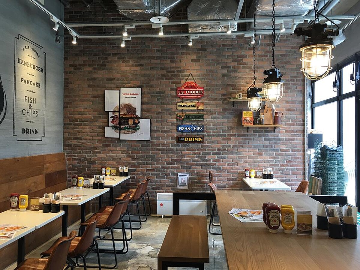 日本連鎖美食「J.S. FOODIES TOKYO」是由來自日本的 JOURNAL STANDARD 透過飲食文化、穿衣哲學 與品味居家等整體連貫的生活形態提案,所推出的“風格選食餐飲店生活品牌,在林口三井Outlet的獨立店中,可以感受到時髦的美式工業風空間,座位也是以皮革、鐵管等元素組成,加上戶外還有泳池造景,吃著漢堡與鬆餅甜品,都能感受到無比的幸福。
