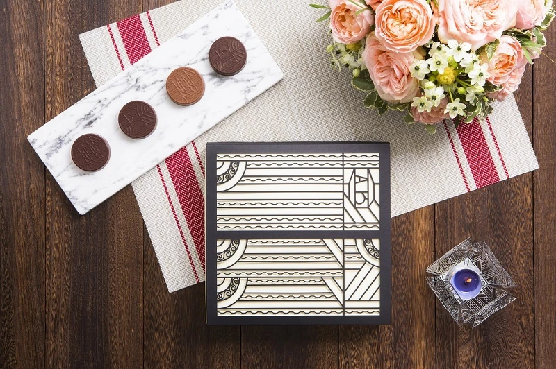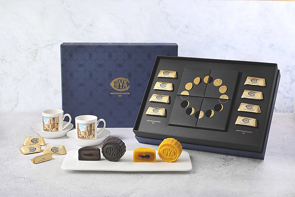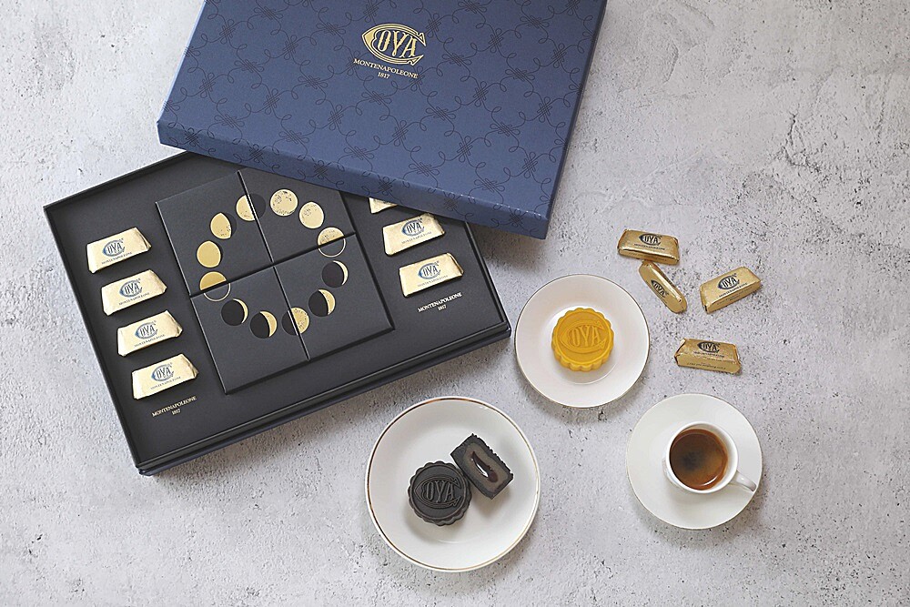 米蘭百年甜點COVA也為了中秋佳節,推出一款中義合併的「品月藏饌中秋禮盒」,外盒以品牌標誌性的皇家深藍及經典壓紋為設計,展現古典品味,內盒則是簡約的黑色調,更將月象的變化融入包裝,非常具有巧思。