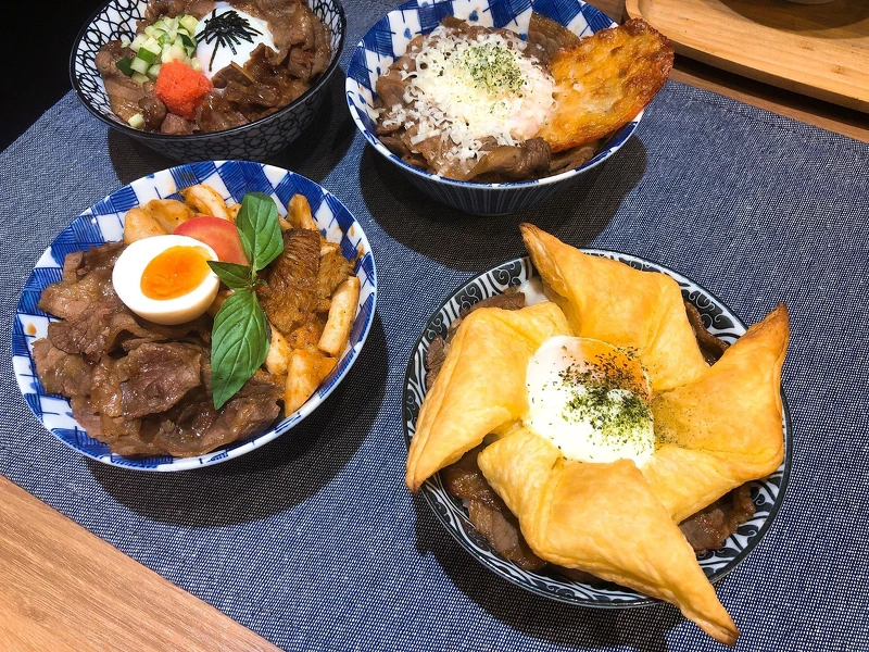其中最吸睛的便是「法式千層酥皮燒肉丼」,取自酥皮濃湯的概念,將酥皮混著溫泉蛋和松露蕈菇白醬與米飯,口感別具新意,另外「起司瀑布燒肉丼」則是將莫札瑞拉與切達起司製成起司餅,還會有桌邊現刨起司宛如瀑布般流瀉,是起司控必點新菜。