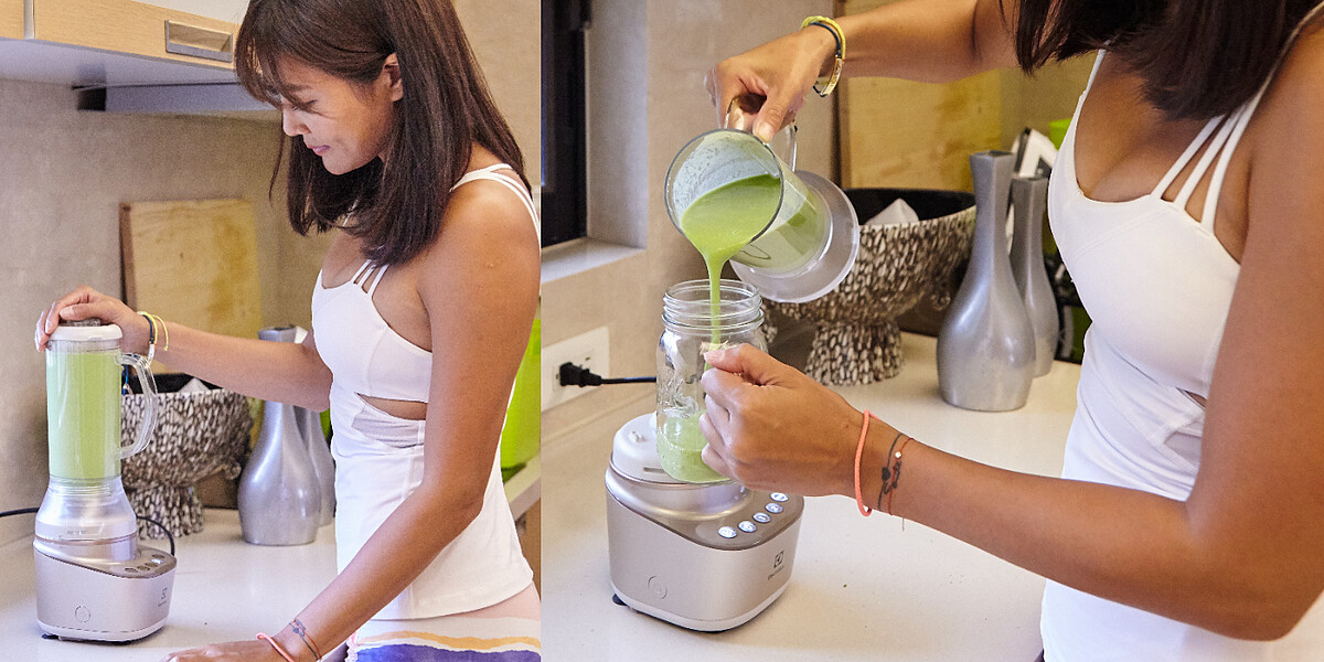 運動前不想吃太多,我會準備補充能量的自製飲品,只要喝一杯健美活力特調或是果昔,就能增加體力補足營養,我也常常和家人分享,自己打果汁真的比市面上的現成飲品健康天然許多,推薦給每一個愛家也懂得愛自己的活力媽咪喔。