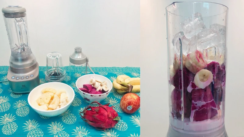 火龍果x1+香蕉x1/2+冰塊1cup+椰奶1cup
