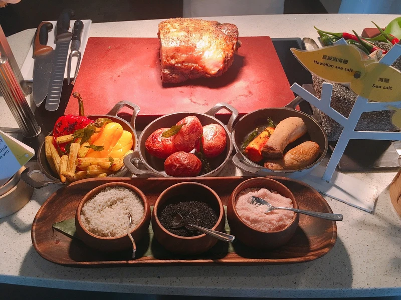 主廚艾倫佛斯特(Aaron Foster)此次應邀來台並準備了多款拿手經典東亞料理、娘惹料理、印度料理及泰式料理,像是清邁的豬肉鮮蝦香腸、泰式烤豬肉等。