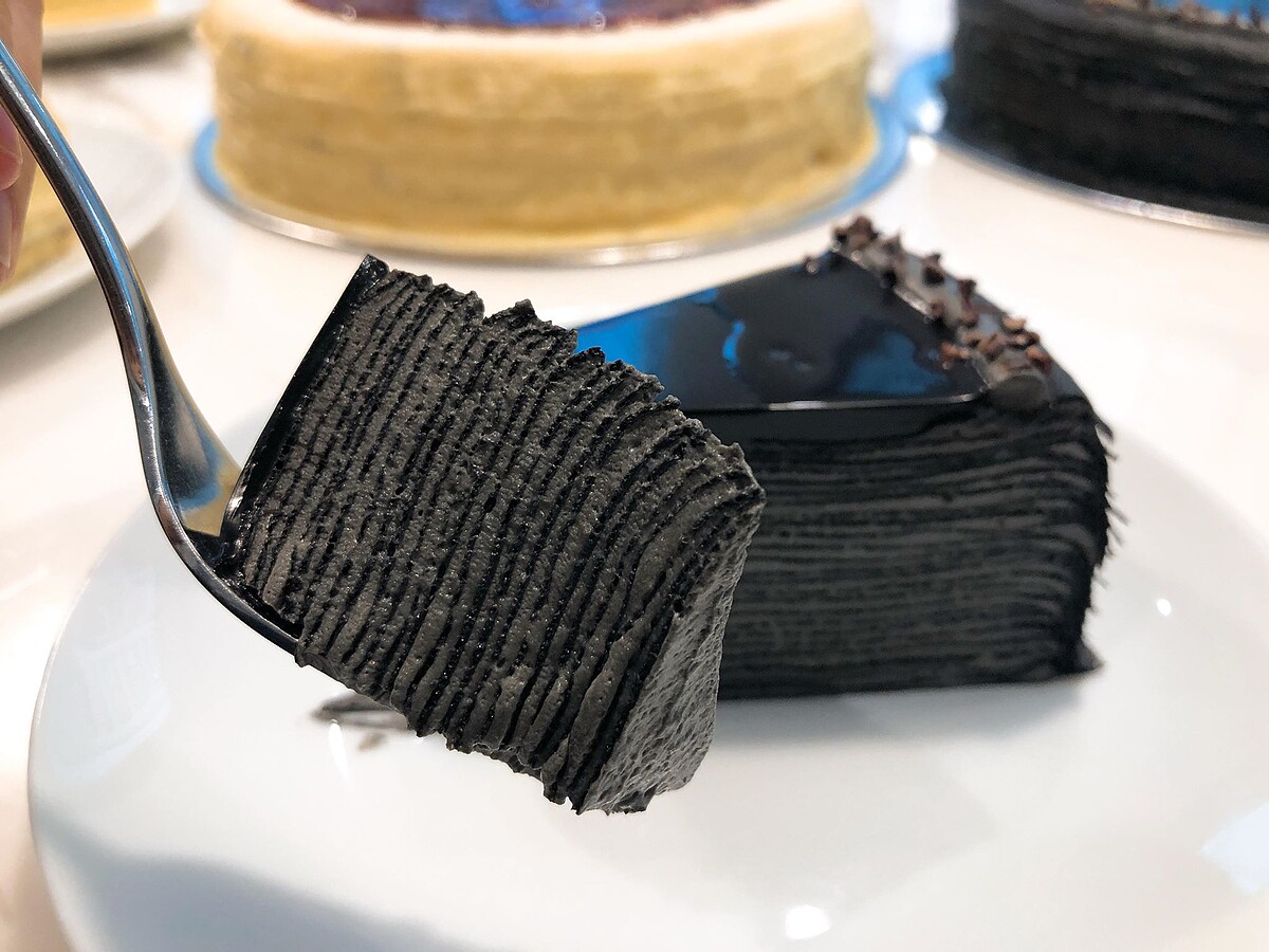 特別以「千層季」為主題,Lady M這位一口氣推出兩款全新口味,包括「竹炭咖啡千層蛋糕」以及「紅豆千層蛋糕」,其中尤其「竹炭咖啡千層」最搶眼,利用天然竹炭,讓外觀呈現深沈優雅的曜黑,並以可可碎片點綴,絕對是本季最時髦又大人味的蛋糕。