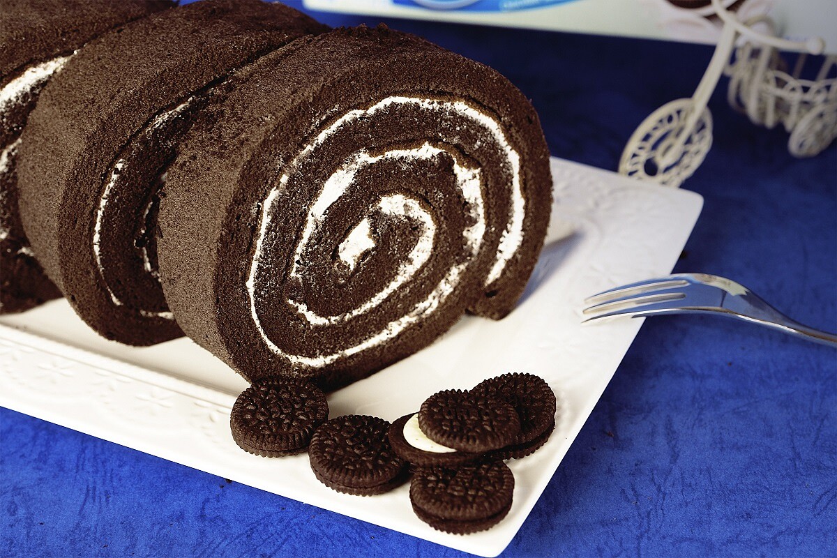 不信大家來看看圖片流口水!身為蛋糕控的OREO巧克力蛋糕,柔軟海綿蛋糕捲住OREO奶油餡料與OREO餅乾塊,每次咬下都吃得到濃郁的奶油和脆脆的餅乾,滑順綿密奶油香加上清爽的巧克力滋味,M編大愛,不要阻止我減肥,11月再說!