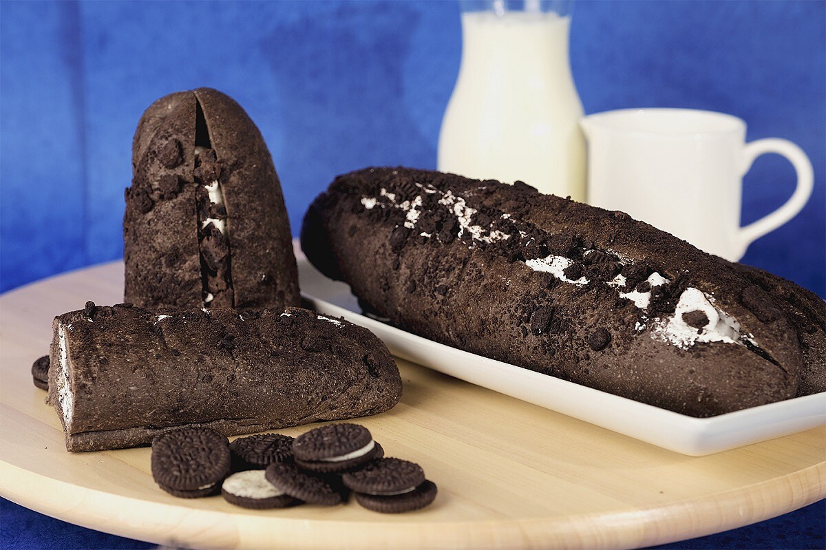 還有〜看了就令人龍心大悅(演起宮廷劇來…)的巧克力雷歐娜麵包,直接在鬆軟的麵包淋上濃郁的巧克力醬,有沒有看到巧克醬上面滿滿的OREO餅乾塊,這就是經典OREO風味,不吃不行!