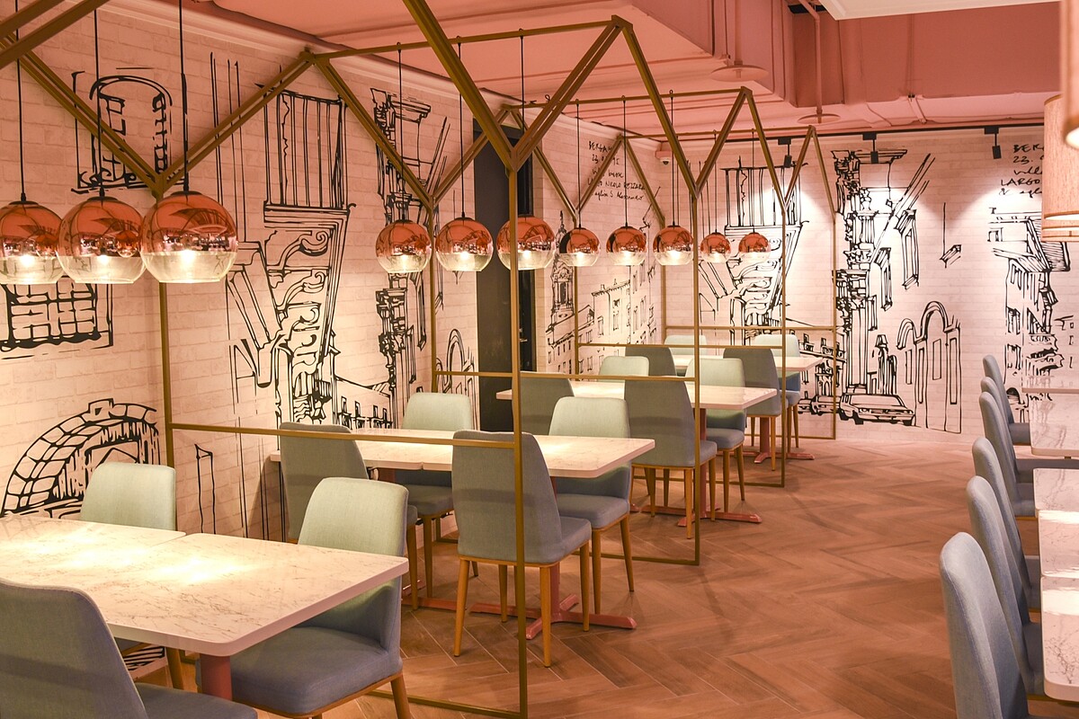 店家以夢幻、甜蜜、浪漫等元素為靈感,將少女粉搭配古典Tiffany綠打造用餐,再加上手繪風格的牆面,目的就是要讓來此用餐的大家擁有舒適感受,另外,樂尼尼也設計各種不同風格的用餐區,來滿足女孩喜愛拍照的需求。