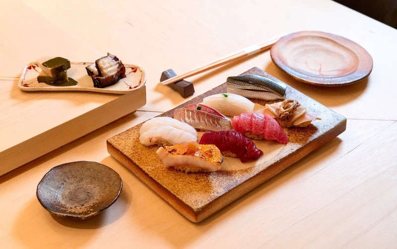 壽司選料嚴謹,米飯以最上乘的日本米及三種日本醋混合而成,新鮮的海鮮從日本各地平行輸入。鮟鱇魚肝壽司是廚師拿手之作。