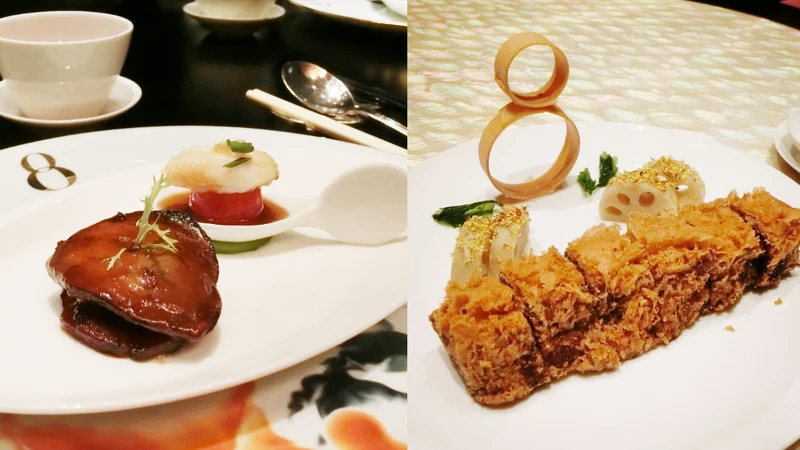 來到澳門一定要品嚐星級美食,這次編特地來品嚐新葡京酒店的The eight 8餐廳,主打精緻點心及新派廣東菜,連續獲得米其林三顆星的高級中菜食府(聽起來好威),一踏進餐廳就發現到處都有寓意吉祥富貴的「8」,還有從牆上到盤子都有中國風的金魚圖案,在你還沒開始用餐前,8餐廳就先準備好了一場視覺的饗宴。